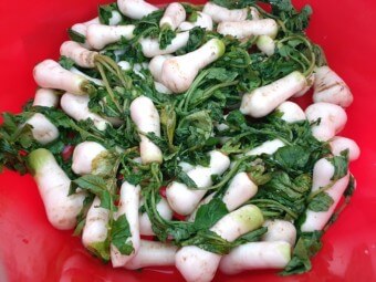 1. 알타리 무 손질: 흙이 묻어있는 알타리를 깨끗이 씻어줍니다